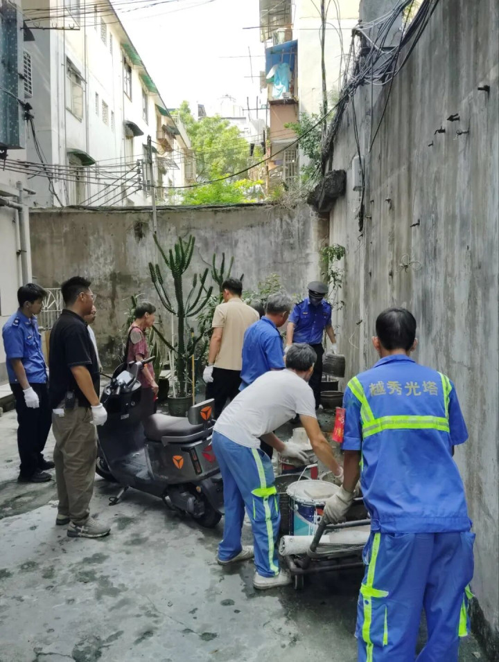 重点区域消杀工作更精细化,将消毒力量集中投向重点区域,采取“空间喷雾+滞留喷洒”相结合的方式,进行全覆盖的成蚊灭杀,加强户内灭蚊力度,并与六榕街协作开展合围消杀作业。