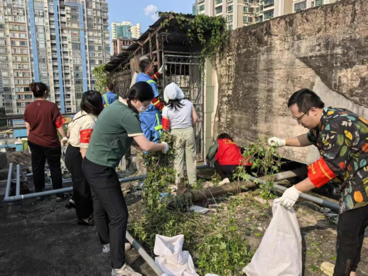 持续开展全街爱国卫生运动,发动机关干部下沉社区,联合物管小区、沿街商铺、专业市场、在职党员、志愿者及机团单位,围绕房前屋后、背街小巷、绿化带全面开展“三清”工作。